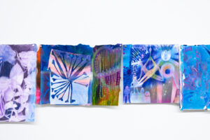 Barbara Jenkins is a full-time English teacher working in Chicago Schools, I can keep practicing daily. My mornings consist of waking before dawn. Beginning with a cup of coffee and my “morning pages,” I can fit in a couple of moves on the two paintings I work on. These small mixed-media paintings become blueprints, or an alphabet, if you will. Once I have a vacation, I have time to create a bigger work of art inspired by the alphabet created within my daily routine. Giving myself this early time daily allows me to bring myself to the classroom.