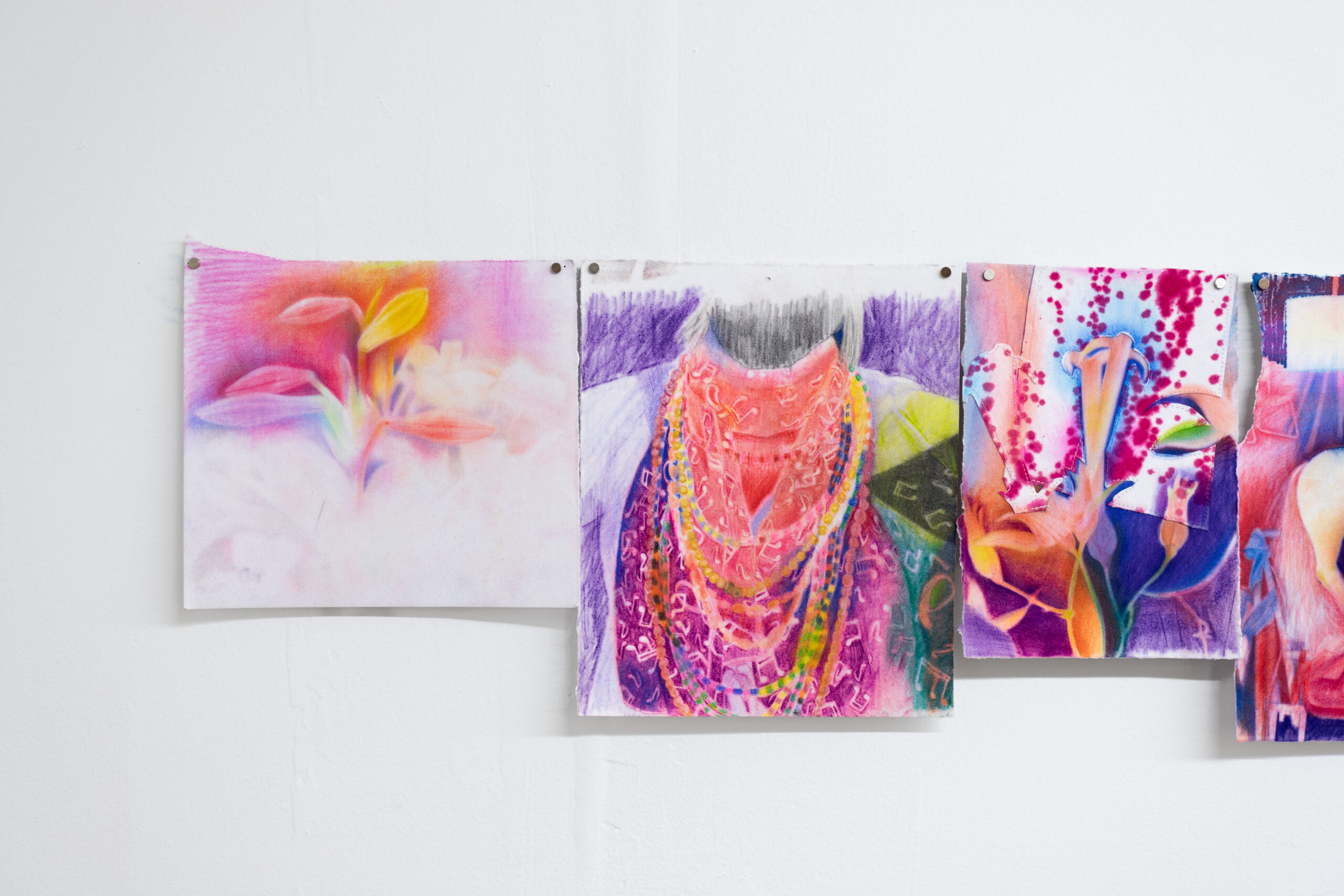 Drawing on brings together a mixture of artists whose practices stem from, around and on drawing. Charged saturation, value and exploration are at play through a shared obsession in mark making that lies somewhere between abstraction and image. What progresses a practice? What are we drawing on?